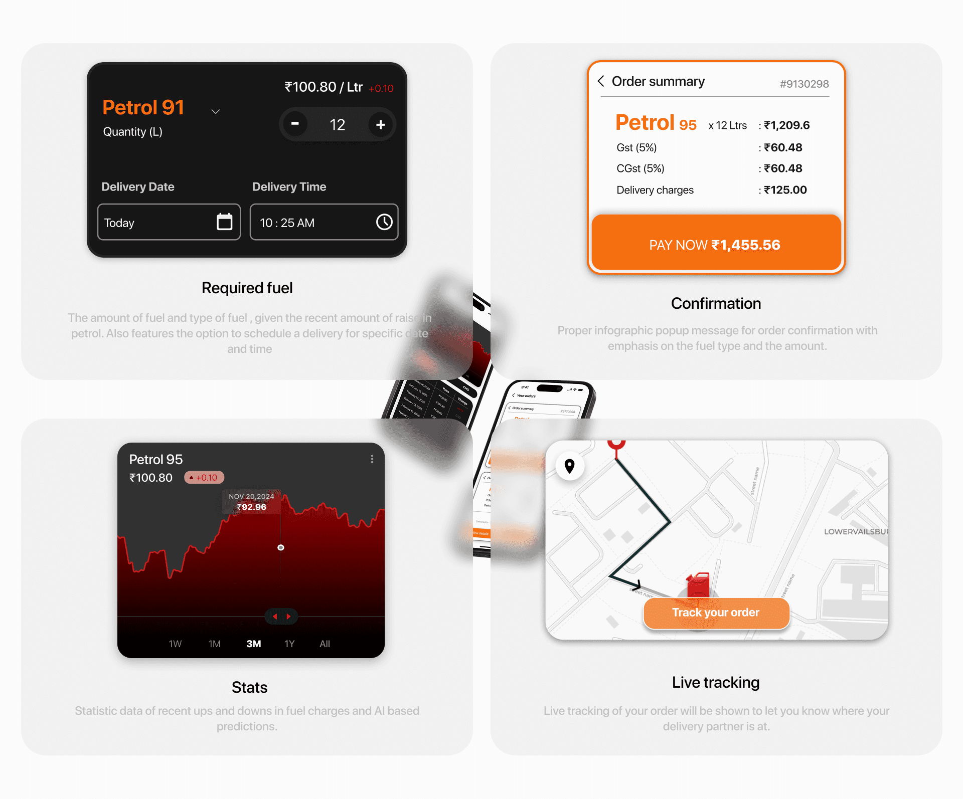 Users can easily order petrol, diesel, or CNG for home delivery, eliminating the need to visit fuel stations. The app provides real-time fuel prices, historical price trends, and a seamless ordering experience.