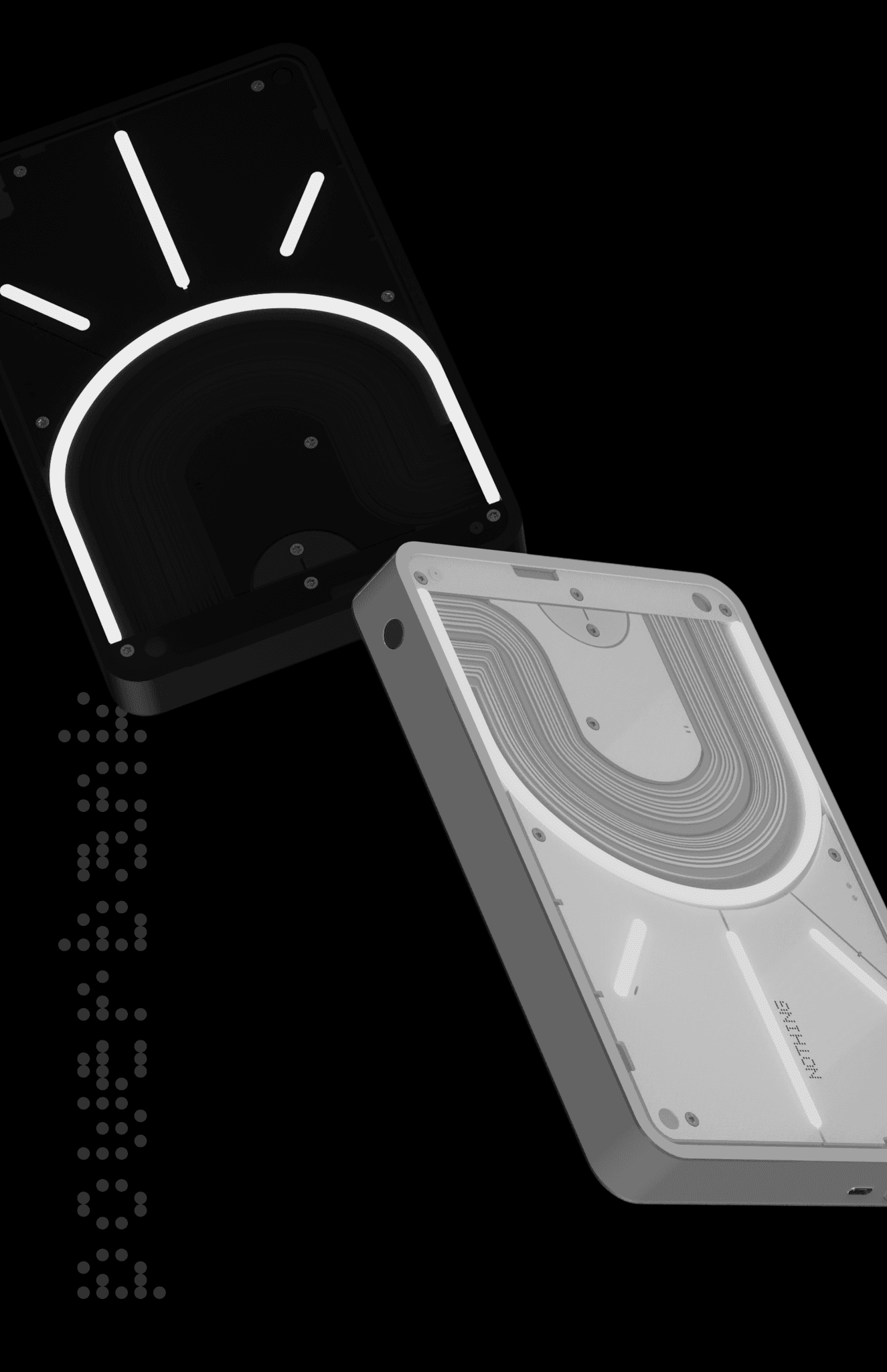 Inspired by Nothing’s signature transparency and LED glyph interface, the power bank reveals its inner structure through translucent materials, geometric layering, and functional lighting. The aim was to give a sense of tech honesty while maintaining visual intrigue and clean usability.